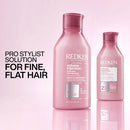 Take your style to new heights with redken Volume Injection Conditioner. Ideal for fine or flat hair, this lightweight detangling conditioner is formulated with a volume-boosting blend of filloxane and silicone polymers that create lift, enhance body and volume and provide hair with a soft, polished finish. For best results, use daily after Redken’s High Rise Volume Lifting Shampoo.